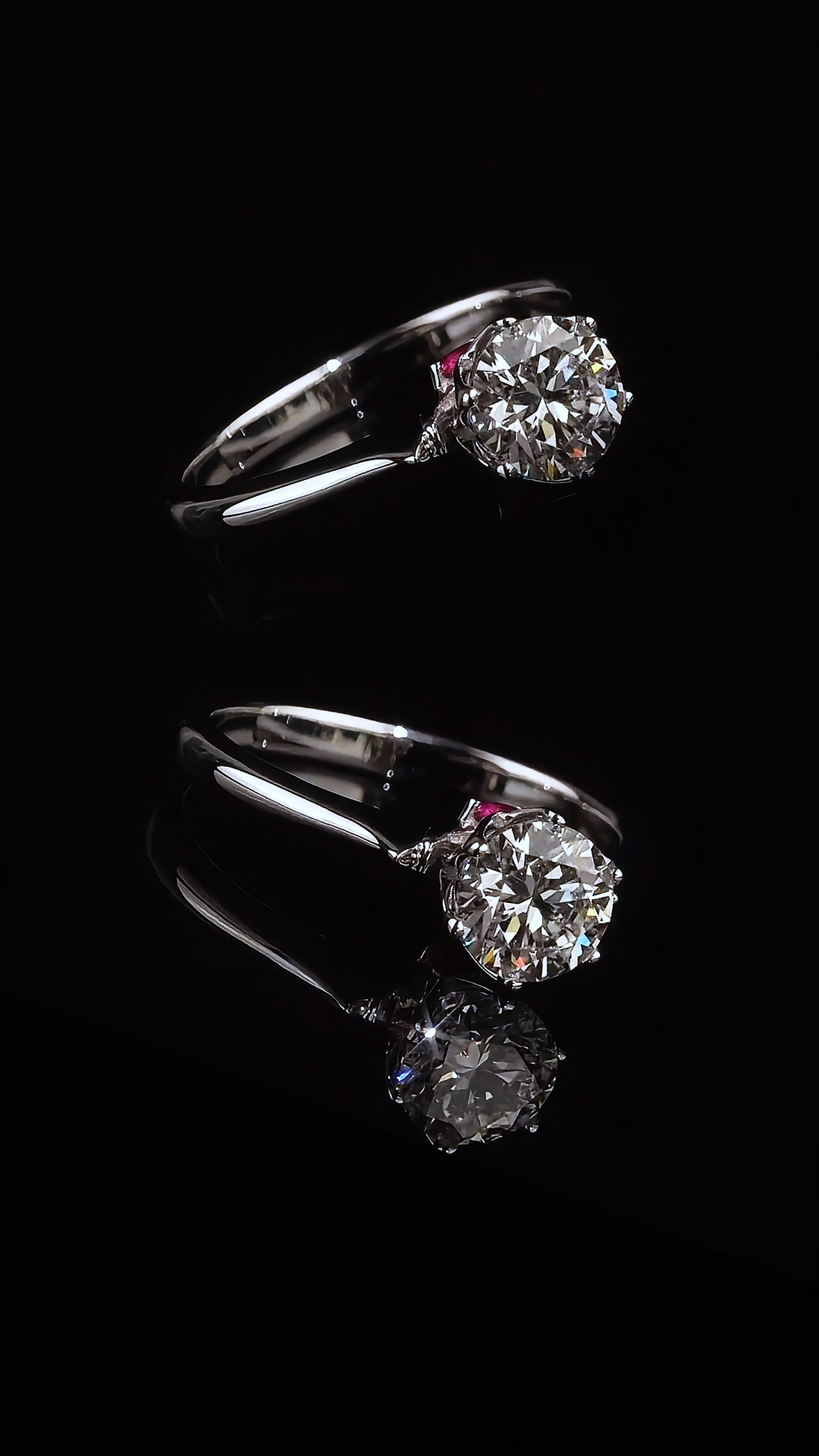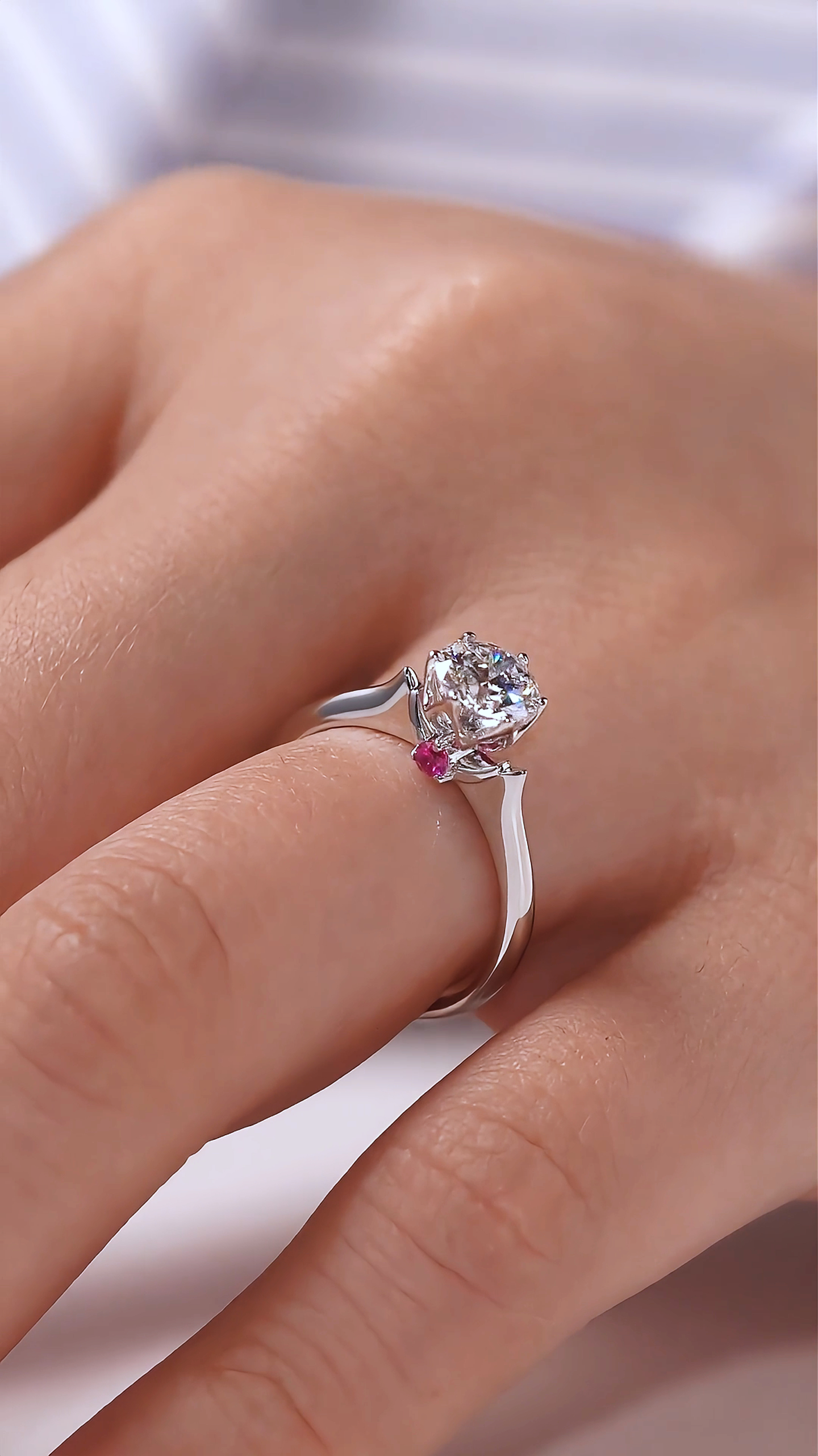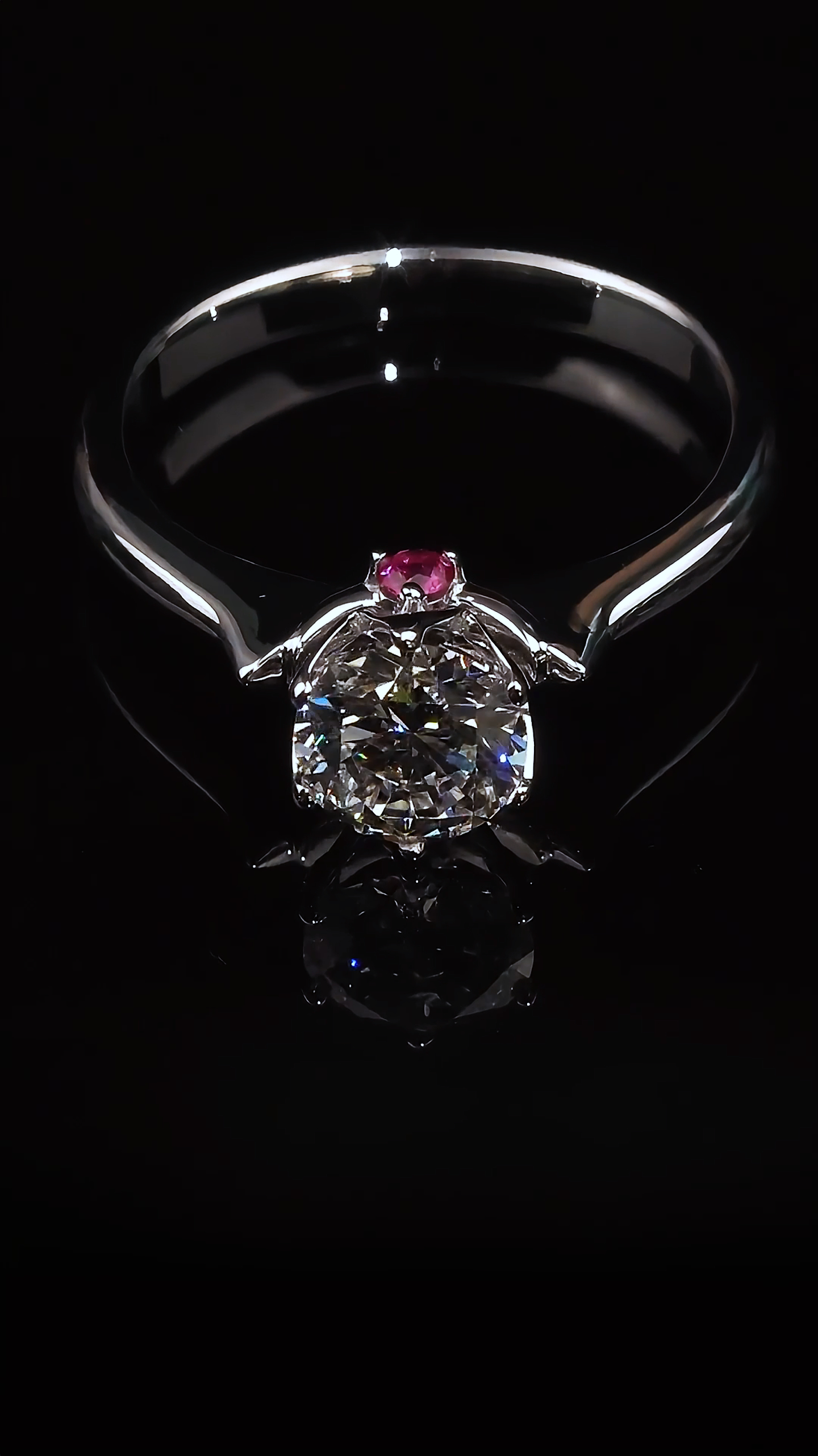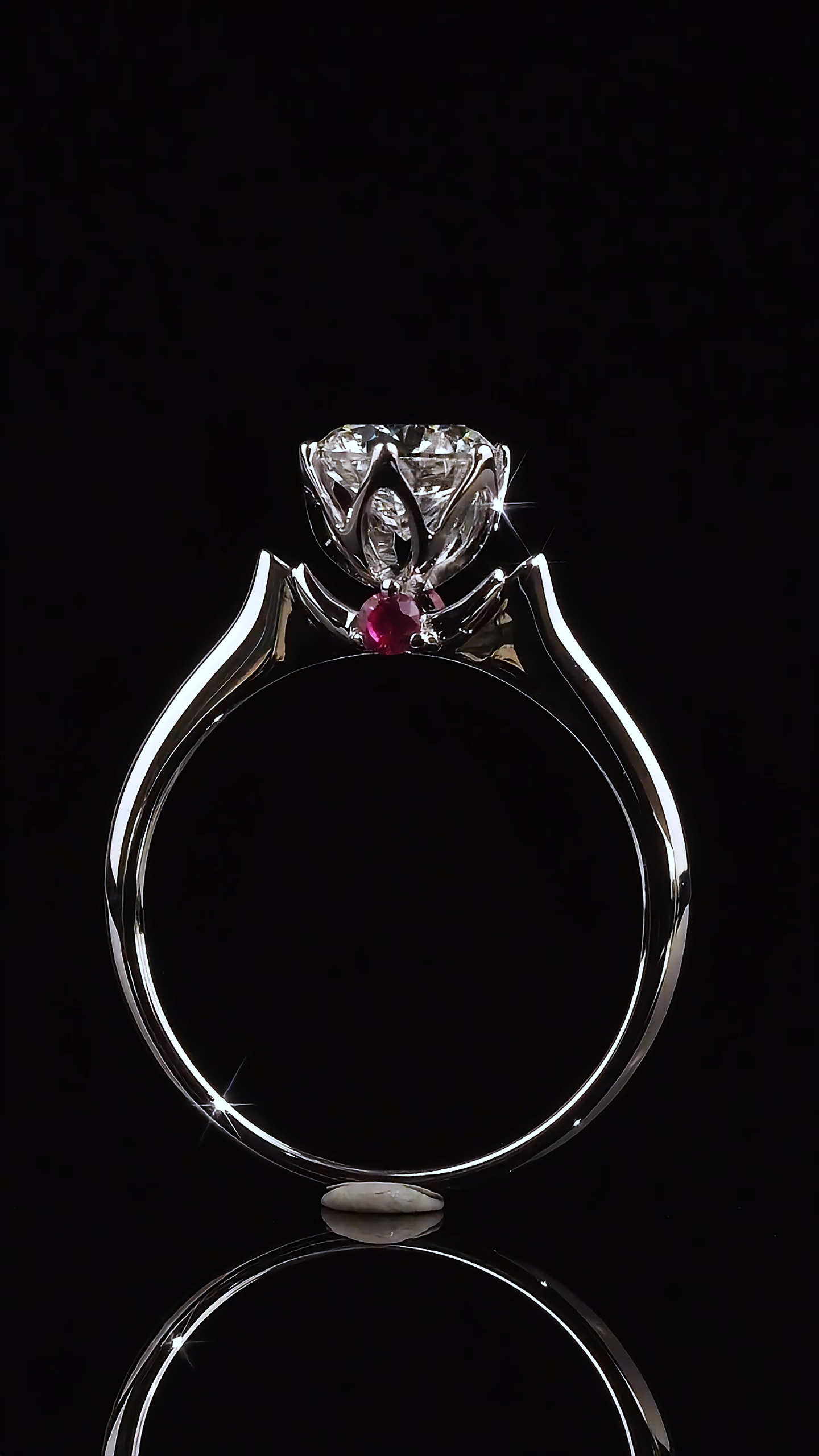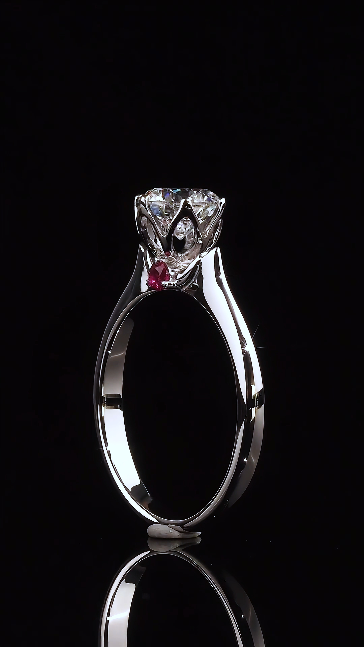 “Heartfelt” diamond engagement ring conveys profound sentiments and a protective love. The round diamond symbolizes a pure heart, while the hollowed-out marquise-shaped setting forms a heart design, representing sincere devotion. The accents of red rubies not only add a touch of elegance to the jewelry but also symbolize passionate love. The semi-circular design is not only unique and beautiful but also signifies an all-encompassing protection for love.
