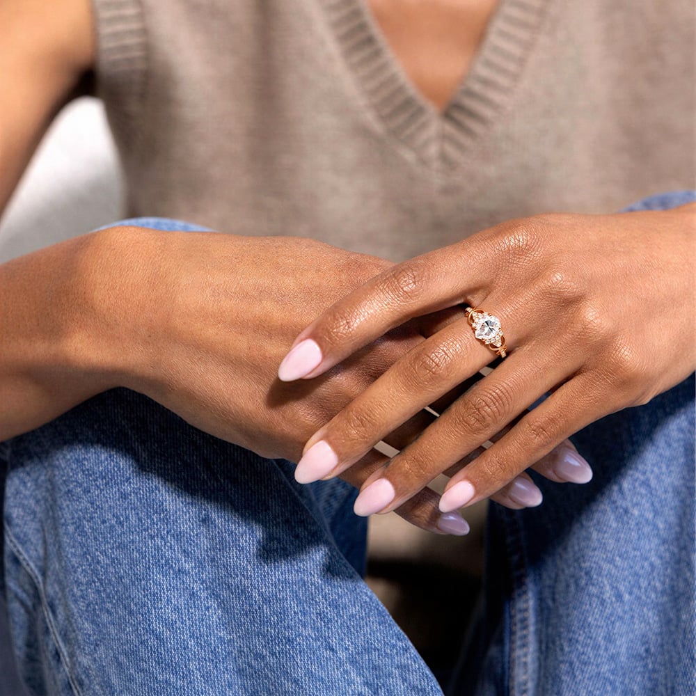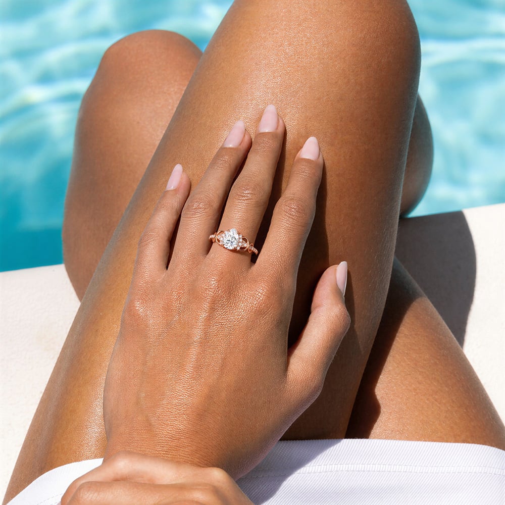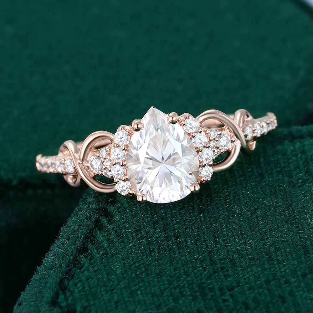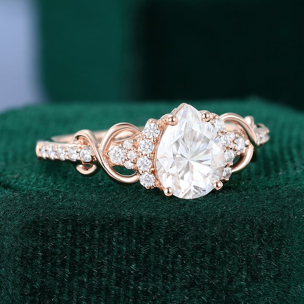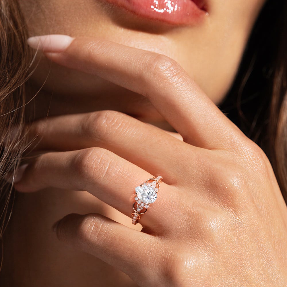 The design features a brilliant pear cut Lab Grown Diamond center stone, with pavé accents along the sides adding to its glow. Twisting gracefully into the shape of an infinity symbol (∞), the lines weave a timeless tale of eternal love. With every glimmer and curve, the Infinity Ring beautifully captures the promise of forever in each intricately placed stone.