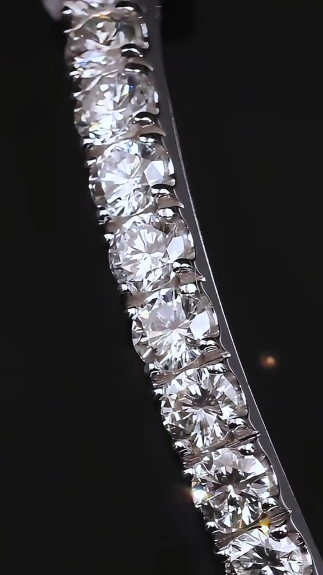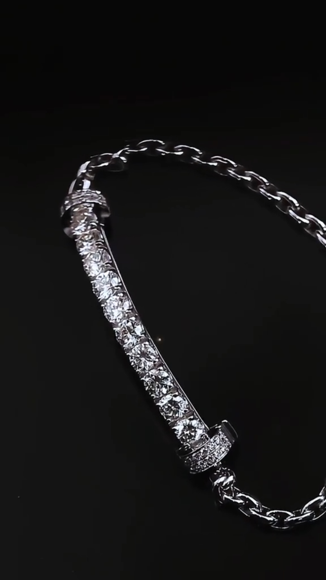 The Smile Diamond Bracelet, adorned with a smiling mouth-shaped arrangement of diamonds, features an 18K white gold chain, symbolizing a source of happiness. The video showcases its crafting process, displaying the brilliant smile and beautiful symbolism of the jewelry.