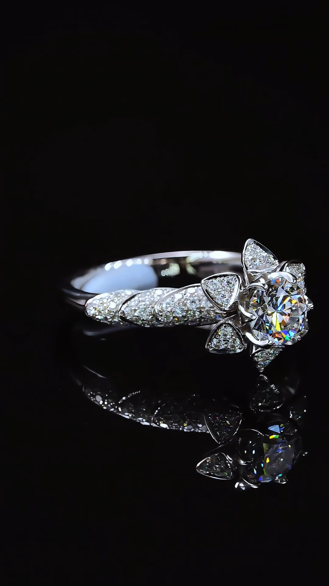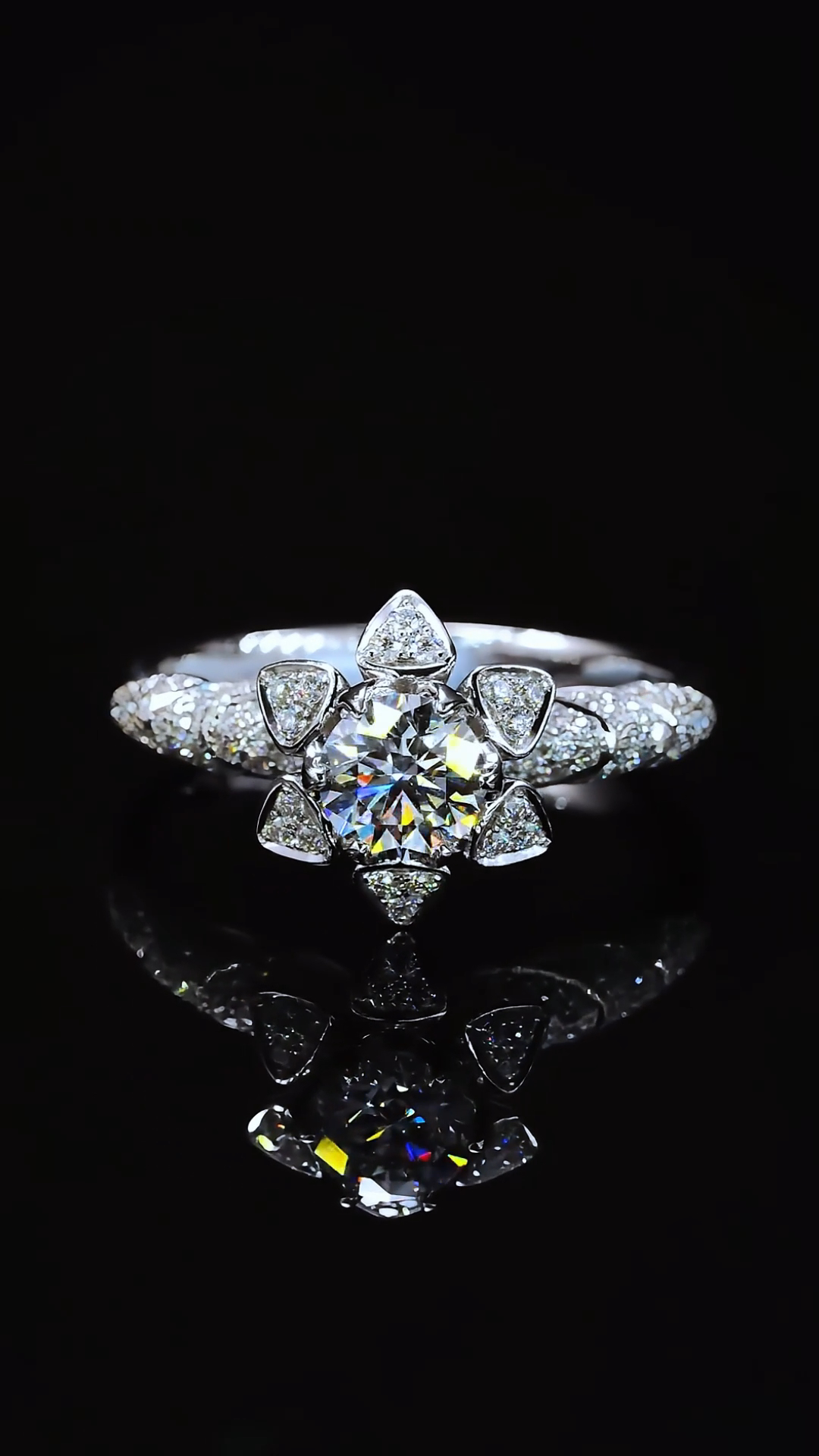 This “Star of Bethlehem Flower” 18K white gold diamond ring symbolizes hope, guidance, and eternal love. The central round diamond represents perfection and eternity, while the Star of Bethlehem flower design imparts a sense of sanctity and brilliance to the ring. The Star of Bethlehem flower symbolizes the light of hope and the power of guidance. This ring not only expresses the pursuit of a bright future but also embodies the wish for happiness and an everlasting promise.